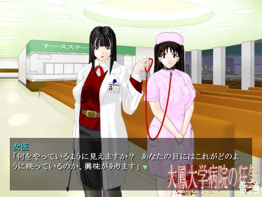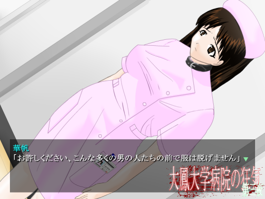 首輪を付けられ引き回しにされている看護婦大崎華帆(おおさきかほ)に出会う。